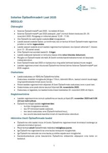 Solarise laat 2025 REEGLID